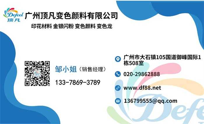 買反光顏料就到廣州頂凡變色顏料,頂凡作為國內(nèi)知名的反光顏料生產(chǎn)廠家,我們的產(chǎn)品種類非常齊。全價(jià)格咨詢電話:13378693789