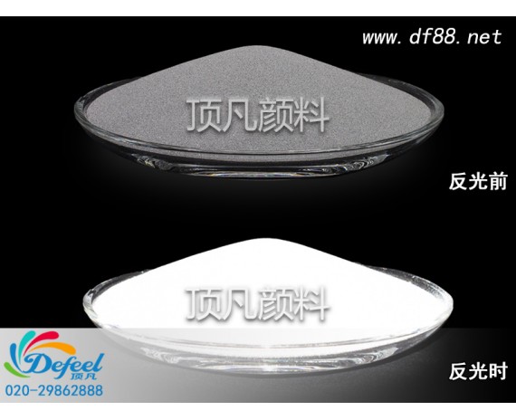 FG21灰色200目反光粉制品采用高折射率玻璃珠后半表面鍍鋁作為后向反射器,具有較強的逆向回歸反射性能,能將85%的光線直接反射回光源處,回歸反射所造成的反光亮度,可使駕駛人員和帶光源的夜間作業人員在夜間或視野不佳的情況不清楚地看見行人和障礙目標,確保雙方安全。